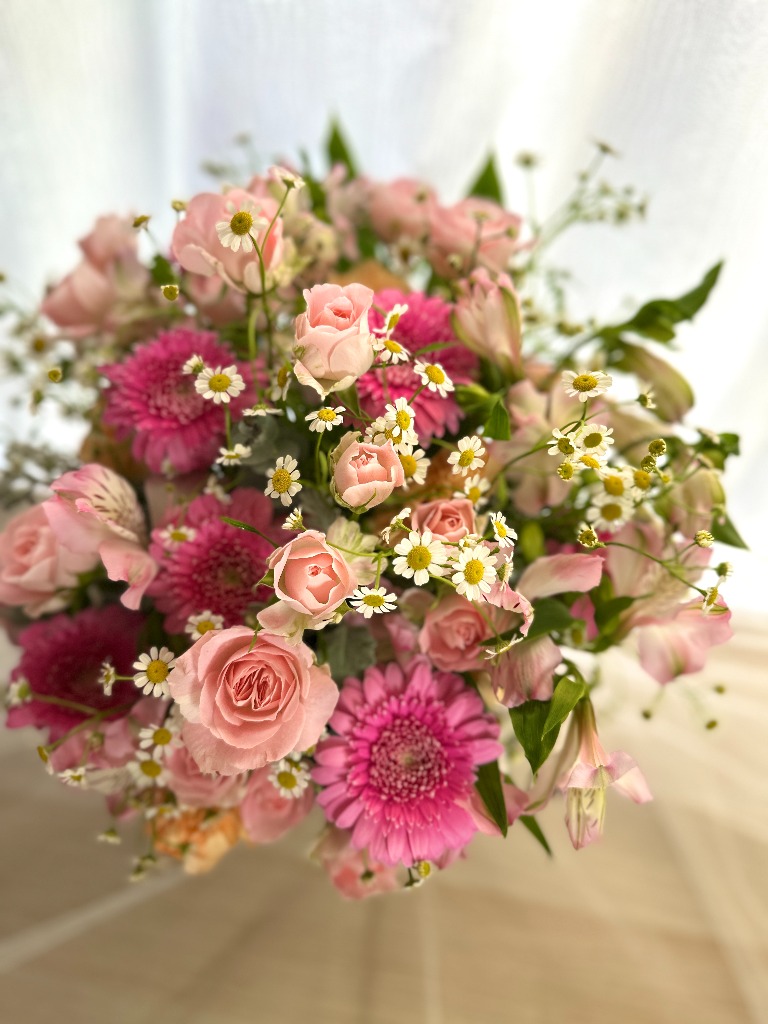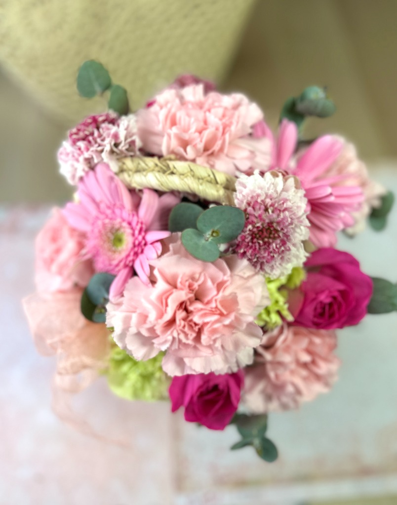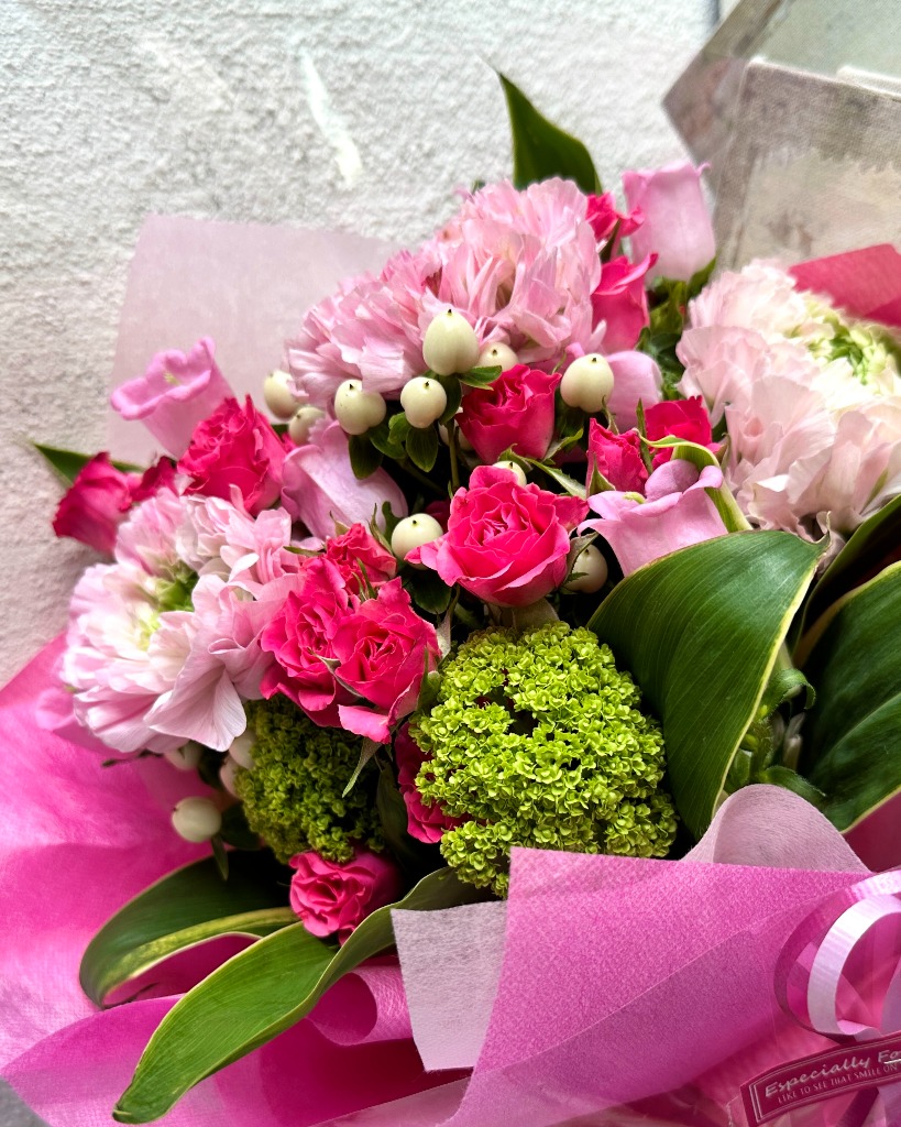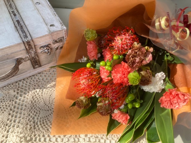 普段…というか時期的にそれほど忙しくないときなら、「そうだお花を買っていこう」とか「あ、送別会にお花いるんだった」と思い立ってお花屋さんに行き、目の前で作っていただくのもそれほど時間のかかるものではないと思われます。