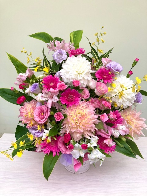 ピンクと白のお好きなオーナー様へのお祝いなので、ピンクをメインにしました。