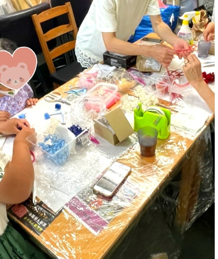 お花のチョイスや配置をお嬢さん(小1です)が考えて、グルーで留めていく作業はお母さんが!というほのぼのとしながらも見事な!連携で作成されました😊