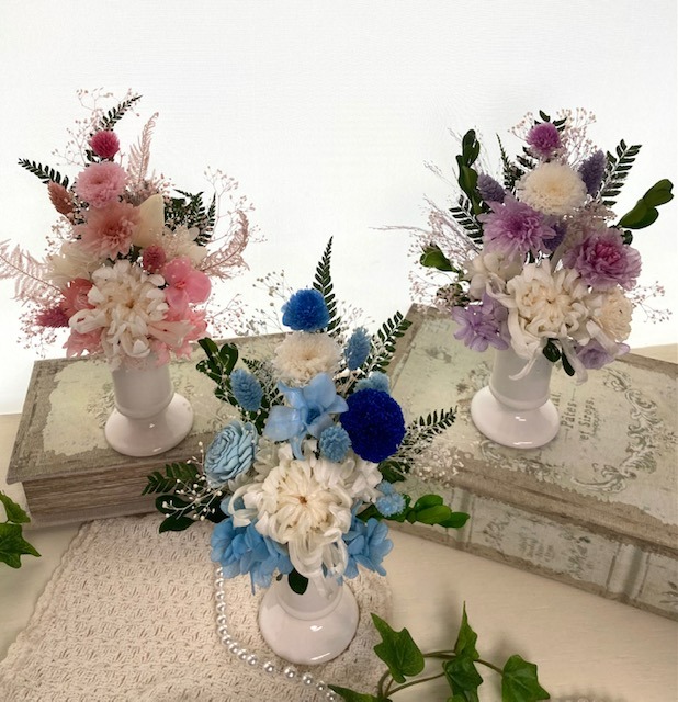 ぜひ生花を加工した花だからこその優しい雰囲気のお仏花をお供えしてみてくださいね!!